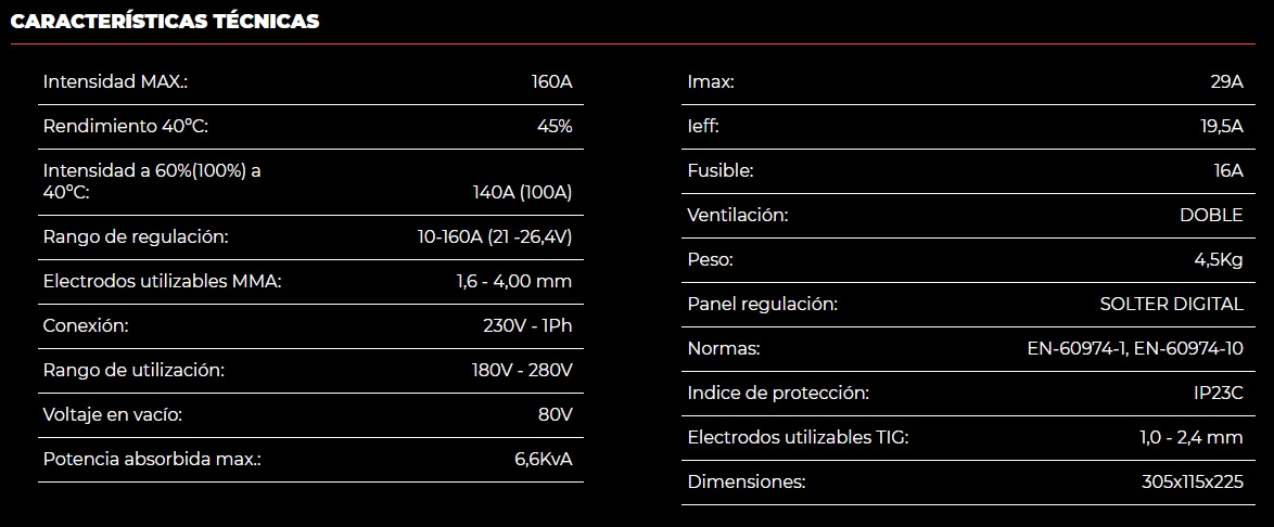 - Inverter de 160 Amp al 45%.